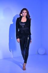 Made from the highest quality velvet fabric, our Kate blazer is a wardrobe essential. It features hand-embellished cuffs and comes with a matching belt.