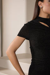 Introducing our enchanting sleek lycra short dress, designed for both comfort and style. The soft, stretchy fabric gently hugs your curves while allowing for ease of movement. A striking eye detail on the chest adds a playful touch, drawing attention to this unique design. The interesting shoulder silhouette elevates the overall look, creating a chic and modern appeal. At the back, a small V-cut hem offers a subtle hint of allure. Embrace effortless elegance with this must-have piece!
