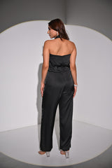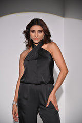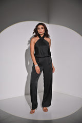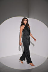 Indulge in elegance with our satin halter style neck jumpsuit, a stunning ensemble designed to captivate every eye in the room. Crafted from luxurious satin fabric, this jumpsuit drapes gracefully, offering a sleek silhouette that flatters every curve. The halter neck design adds a touch of allure, while the cinched waistline accentuates your figure for a sophisticated look. Elevate your wardrobe with this chic piece and make a statement wherever you go.